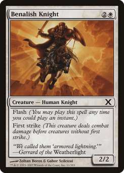 Flash (You may cast this spell any time you could cast an instant.) First strike (This creature deals combat damage before creatures without first strike.)