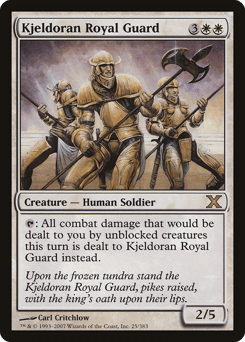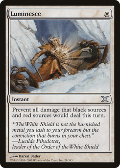 First strike, protection from black and from red (This creature deals combat damage before creatures without first strike. It can't be blocked, targeted, dealt damage, or enchanted by anything black or red.)