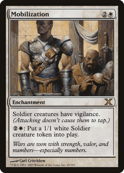 Soldier creatures have vigilance. {2}{W}: Create a 1/1 white Soldier creature token.
