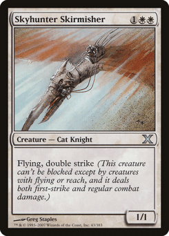 Flying, first strike (This creature can't be blocked except by creatures with flying or reach, and it deals combat damage before creatures without first strike.)