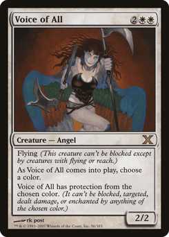 Flying As this creature enters, choose a color. This creature has protection from the chosen color.