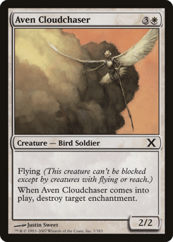 Flying (This creature can't be blocked except by creatures with flying or reach.) When this creature enters, destroy target enchantment.