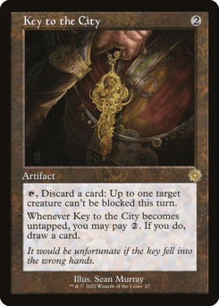 {T}, Discard a card: Up to one target creature can't be blocked this turn. Whenever this artifact becomes untapped, you may pay {2}. If you do, draw a card.