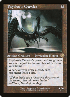 Psychosis Crawler's power and toughness are each equal to the number of cards in your hand. Whenever you draw a card, each opponent loses 1 life.