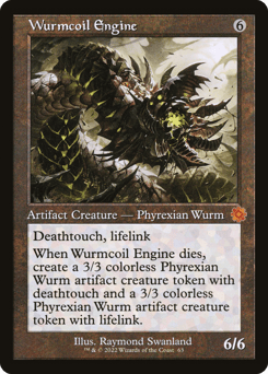 Deathtouch, lifelink When this creature dies, create a 3/3 colorless Phyrexian Wurm artifact creature token with deathtouch and a 3/3 colorless Phyrexian Wurm artifact creature token with lifelink.