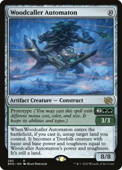 Prototype {2}{G}{G} — 3/3 (You may cast this spell with different mana cost, color, and size. It keeps its abilities and types.) When this creature enters, if you cast it, untap target land you control. It becomes a Treefolk creature with haste and base power and toughness equal to this creature's power and toughness. It's still a land.
