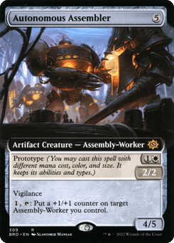 Prototype {1}{W} — 2/2 (You may cast this spell with different mana cost, color, and size. It keeps its abilities and types.) Vigilance {1}, {T}: Put a +1/+1 counter on target Assembly-Worker you control.