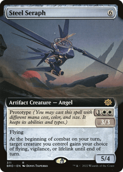 Prototype {1}{W}{W} — 3/3 (You may cast this spell with different mana cost, color, and size. It keeps its abilities and types.) Flying At the beginning of combat on your turn, target creature you control gains your choice of flying, vigilance, or lifelink until end of turn.
