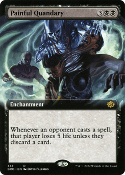 Whenever an opponent casts a spell, that player loses 5 life unless they discard a card.