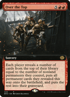 Each player reveals a number of cards from the top of their library equal to the number of nonland permanents they control, puts all permanent cards they revealed this way onto the battlefield, and puts the rest into their graveyard.