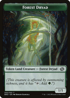 Create X 1/1 green Forest Dryad land creature tokens. (They're affected by summoning sickness.)