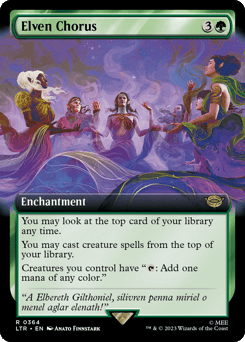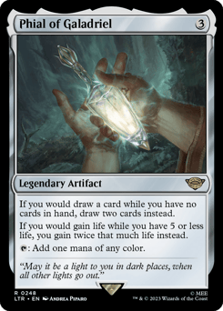 Whenever the Ring tempts you, if you chose a creature other than Galadriel as your Ring-bearer, scry 3. Whenever you scry, you may reveal the top card of your library. If a land card is revealed this way, put it onto the battlefield tapped.