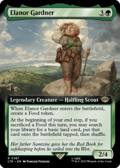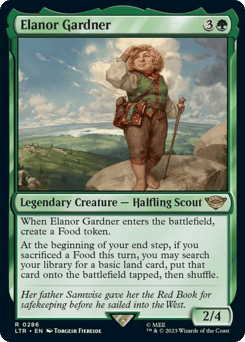 When Elanor enters, create a Food token. At the beginning of your end step, if you sacrificed a Food this turn, you may search your library for a basic land card, put that card onto the battlefield tapped, then shuffle.