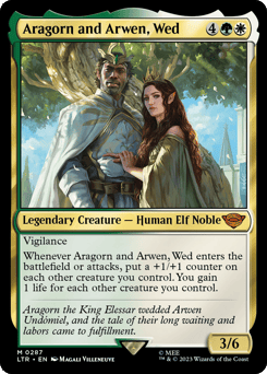 Vigilance Whenever Aragorn and Arwen enters or attacks, put a +1/+1 counter on each other creature you control. You gain 1 life for each other creature you control.