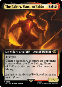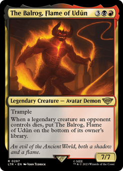 Trample When a legendary creature an opponent controls dies, put The Balrog on the bottom of its owner's library.