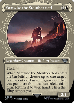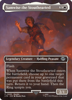 Flash When Samwise enters, choose up to one target permanent card in your graveyard that was put there from the battlefield this turn. Return it to your hand. Then the Ring tempts you.