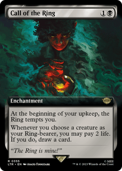 At the beginning of your upkeep, the Ring tempts you. Whenever you choose a creature as your Ring-bearer, you may pay 2 life. If you do, draw a card.