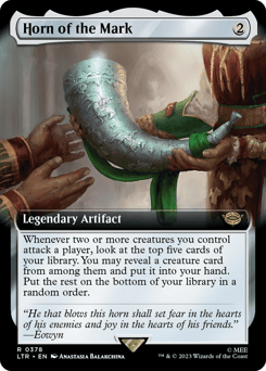 Whenever two or more creatures you control attack a player, look at the top five cards of your library. You may reveal a creature card from among them and put it into your hand. Put the rest on the bottom of your library in a random order.