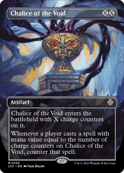 This artifact enters with X charge counters on it. Whenever a player casts a spell with mana value equal to the number of charge counters on this artifact, counter that spell.