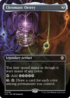 You may spend mana as though it were mana of any color. {T}: Add {C}{C}{C}{C}{C}. {5}, {T}: Draw a card for each color among permanents you control.