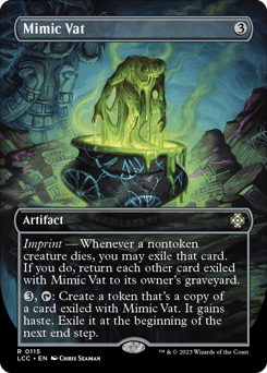 Imprint — Whenever a nontoken creature dies, you may exile that card. If you do, return each other card exiled with this artifact to its owner's graveyard. {3}, {T}: Create a token that's a copy of a card exiled with this artifact. It gains haste. Exile it at the beginning of the next end step.