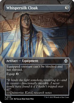 Equipped creature can't be blocked and has shroud. (It can't be the target of spells or abilities.) Equip {2}