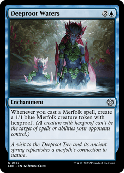 Whenever you cast a Merfolk spell, create a 1/1 blue Merfolk creature token with hexproof. (A creature with hexproof can't be the target of spells or abilities your opponents control.)