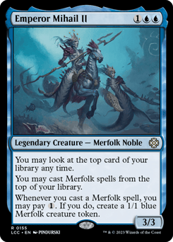 You may look at the top card of your library any time. You may cast Merfolk spells from the top of your library. Whenever you cast a Merfolk spell, you may pay {1}. If you do, create a 1/1 blue Merfolk creature token.