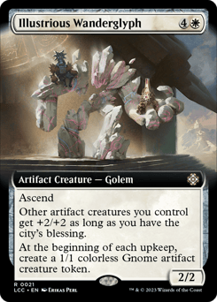 Ascend (If you control ten or more permanents, you get the city's blessing for the rest of the game.) Other artifact creatures you control get +2/+2 as long as you have the city's blessing. At the beginning of each upkeep, create a 1/1 colorless Gnome artifact creature token.