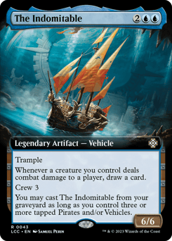 Trample Whenever a creature you control deals combat damage to a player, draw a card. Crew 3 You may cast this card from your graveyard as long as you control three or more tapped Pirates and/or Vehicles.