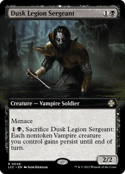 Menace {1}{B}, Sacrifice this creature: Each nontoken Vampire creature you control gains persist until end of turn. (When it dies, if it had no -1/-1 counters on it, return it to the battlefield under its owner's control with a -1/-1 counter on it.)