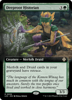 Merfolk and Druid cards in your graveyard have retrace. (You may cast cards with retrace from your graveyard by discarding a land card in addition to paying their other costs.)