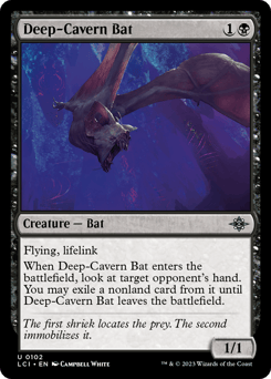 When this creature enters, look at the top X cards of your library, where X is the number of Caves you control plus the number of Cave cards in your graveyard. Put two of those cards into your hand and the rest on the bottom of your library in a random order.