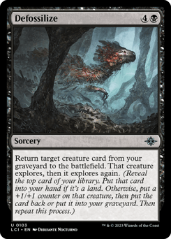 Return target creature card from your graveyard to the battlefield. That creature explores, then it explores again. (Reveal the top card of your library. Put that card into your hand if it's a land. Otherwise, put a +1/+1 counter on that creature, then put the card back or put it into your graveyard. Then repeat this process.)