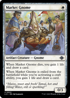 When this artifact enters, create two 1/1 colorless Gnome artifact creature tokens. {W}, Sacrifice this artifact: You gain 3 life.