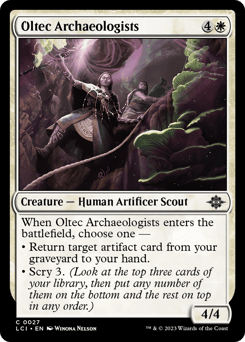 When this creature enters, choose one — • Return target artifact card from your graveyard to your hand. • Scry 3. (Look at the top three cards of your library, then put any number of them on the bottom and the rest on top in any order.)