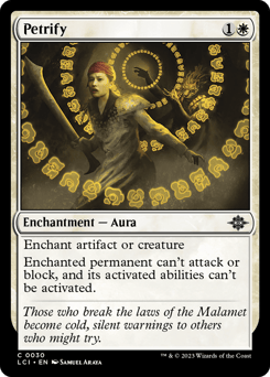Enchant artifact or creature Enchanted permanent can't attack or block, and its activated abilities can't be activated.