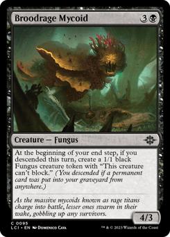 At the beginning of your end step, if you descended this turn, create a 1/1 black Fungus creature token with "This token can't block." (You descended if a permanent card was put into your graveyard from anywhere.)