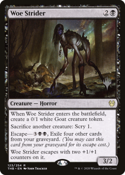 When this creature enters, create a 0/1 white Goat creature token. Sacrifice another creature: Scry 1. Escape—{3}{B}{B}, Exile four other cards from your graveyard. (You may cast this card from your graveyard for its escape cost.) This creature escapes with two +1/+1 counters on it.