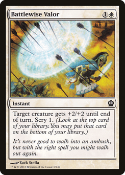 Target creature gets +2/+2 until end of turn. Scry 1. (Look at the top card of your library. You may put that card on the bottom.)