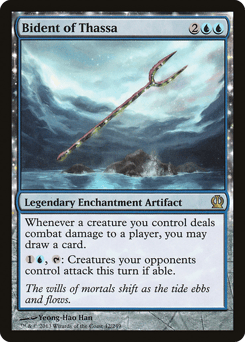 Indestructible As long as your devotion to blue is less than five, Thassa isn't a creature. (Each {U} in the mana costs of permanents you control counts toward your devotion to blue.) At the beginning of your upkeep, scry 1. {1}{U}: Target creature you control can't be blocked this turn.
