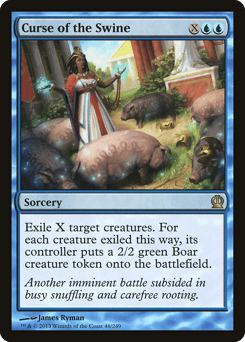Exile X target creatures. For each creature exiled this way, its controller creates a 2/2 green Boar creature token.