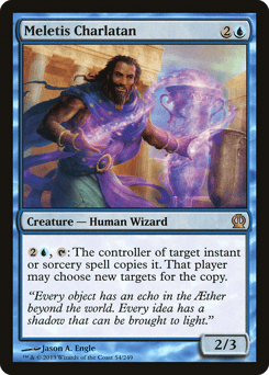 {2}{U}, {T}: The controller of target instant or sorcery spell copies it. That player may choose new targets for the copy.