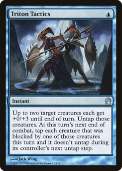 Up to two target creatures each get +0/+3 until end of turn. Untap those creatures. At this turn's next end of combat, tap each creature that was blocked by one of those creatures this turn and it doesn't untap during its controller's next untap step.