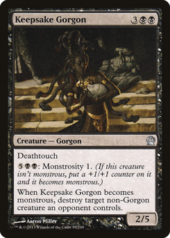 Deathtouch {5}{B}{B}: Monstrosity 1. (If this creature isn't monstrous, put a +1/+1 counter on it and it becomes monstrous.) When this creature becomes monstrous, destroy target non-Gorgon creature an opponent controls.