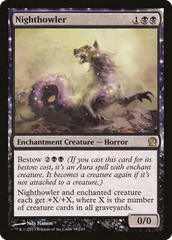 Bestow {2}{B}{B} (If you cast this card for its bestow cost, it's an Aura spell with enchant creature. It becomes a creature again if it's not attached to a creature.) This creature and enchanted creature each get +X/+X, where X is the number of creature cards in all graveyards.