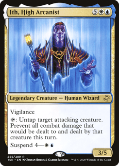 Vigilance {T}: Untap target attacking creature. Prevent all combat damage that would be dealt to and dealt by that creature this turn. Suspend 4—{W}{U}