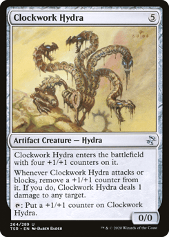 This creature enters with four +1/+1 counters on it. Whenever this creature attacks or blocks, remove a +1/+1 counter from it. If you do, it deals 1 damage to any target. {T}: Put a +1/+1 counter on this creature.