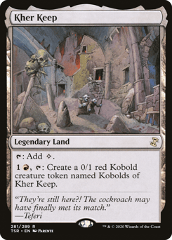 {T}: Add {C}. {1}{R}, {T}: Create a 0/1 red Kobold creature token named Kobolds of Kher Keep.