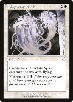 Create two 1/1 white Spirit creature tokens with flying. Flashback {1}{B} (You may cast this card from your graveyard for its flashback cost. Then exile it.)